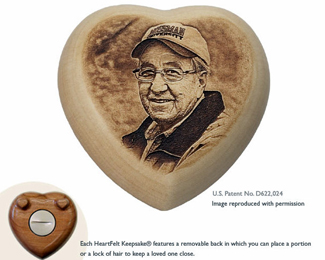 “Heartfelt Keepsakes" uses the latest engraving technologies and equipment to turn your personal photograph into a one-of-a-king handcrafted memory. Place a lock of hair, a small portion of cremated remains, or earth from the graveside in keepsake and create a healing, sensory connection to your loved one’s memory to keep at your side forever. Contact Loveland Funeral Chapel for more information.