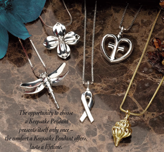 “Keepsake Pendants” bring memories to an even more personal level by holding a small portion of cremated remains, a lock of hair or dried ceremonial flowers. The pendants enable others to cope more easily, to hold a source of comfort in their hands and to find peace in their hearts. Contact Loveland Funeral Chapel for more information.